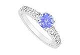 Tanzanite and Diamond Engagement Ring : 14K White Gold - 0.75 CT TGW Size 5.5
